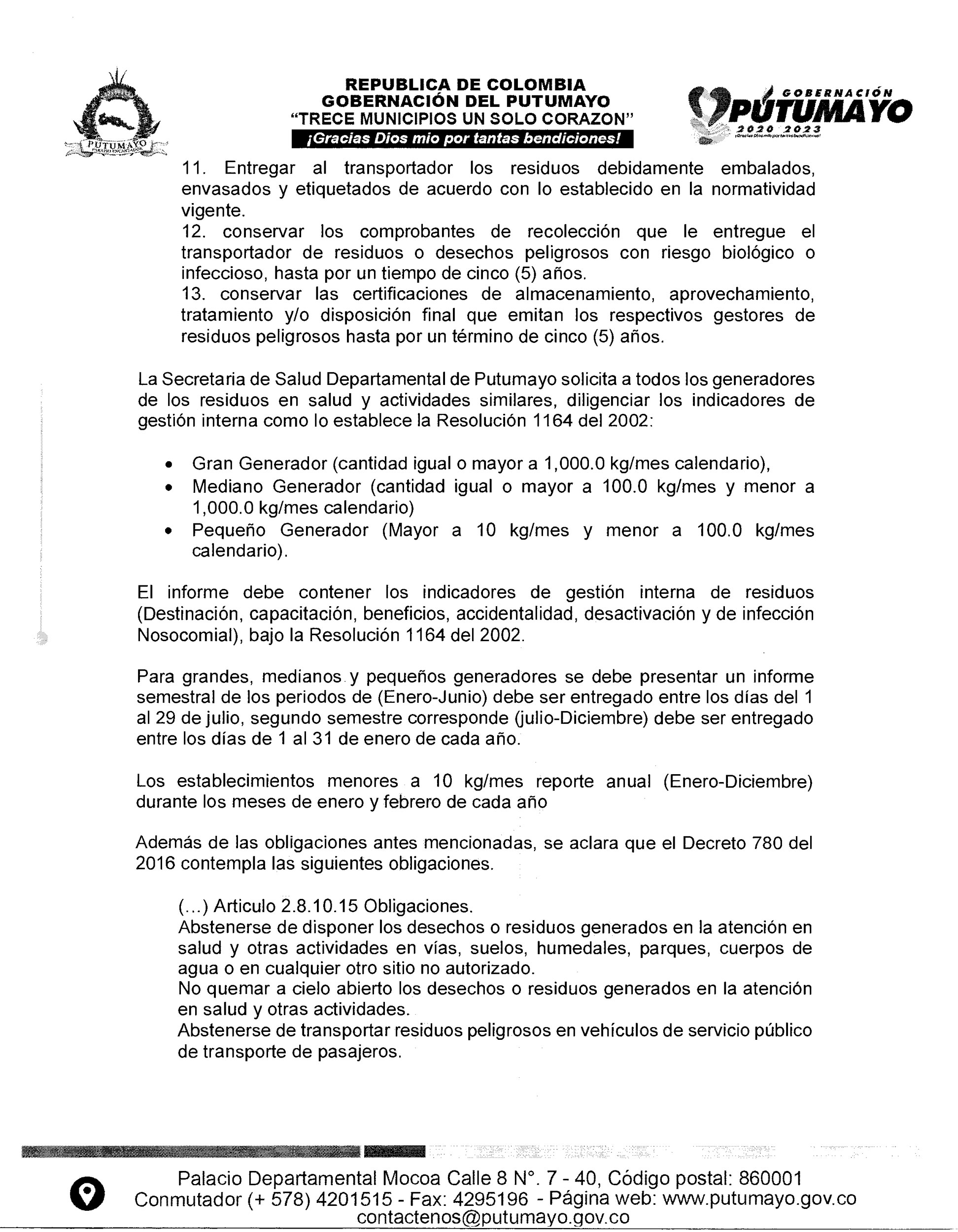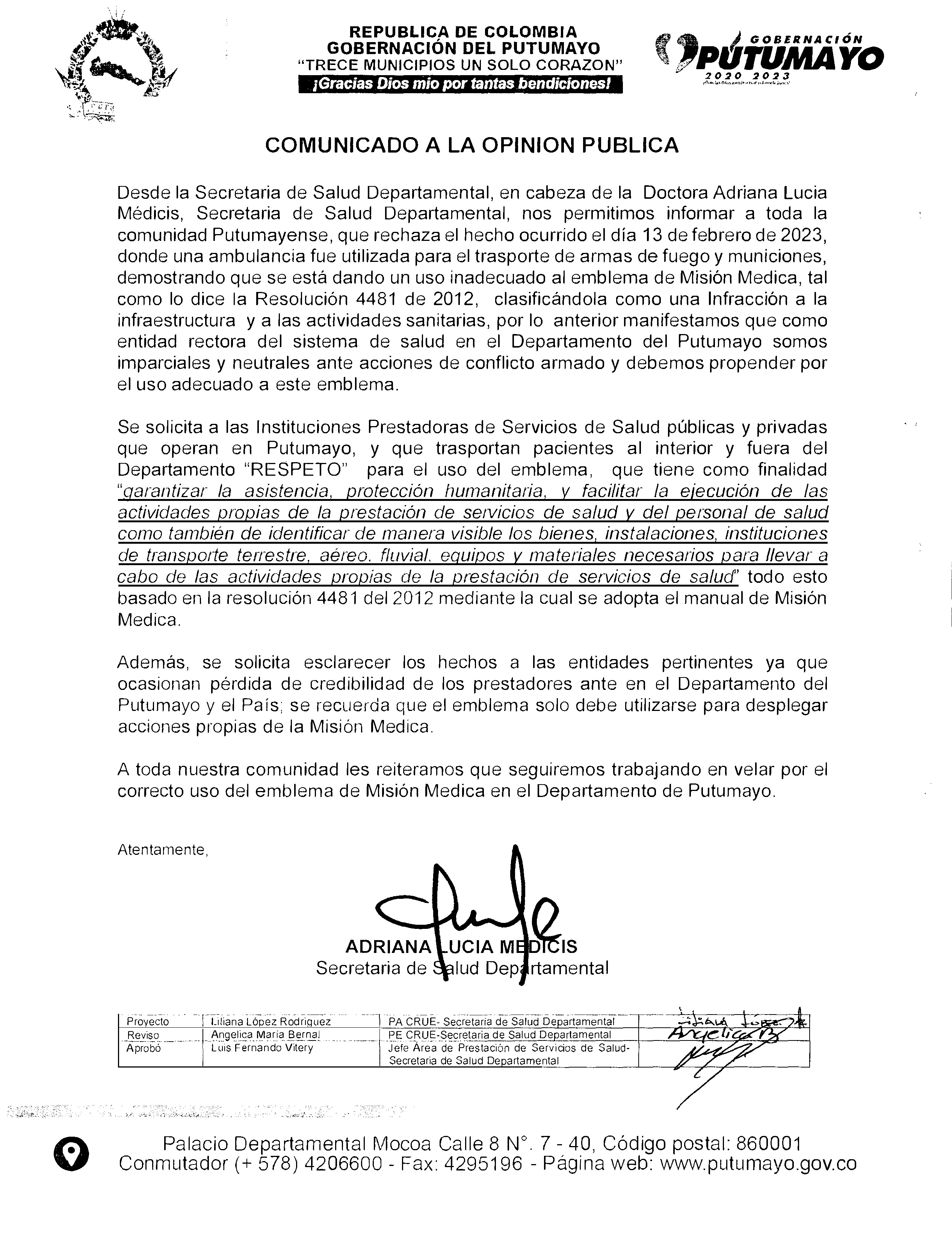 Cualquier información adicional, solicitarla a través del Centro Regulador de Urgencias, emergencias y Desastres CRUE, teléfono 3173716448 o al correo Esta dirección de correo electrónico está protegida contra spambots. Necesita activar JavaScript para visualizarla.